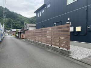 ブロックとフェンスを合わせると約2m位の高さのはずなので結構背が高いですが、板同士の間隔が空いているので風通しや向かってくる車が見える視界は確保できています。