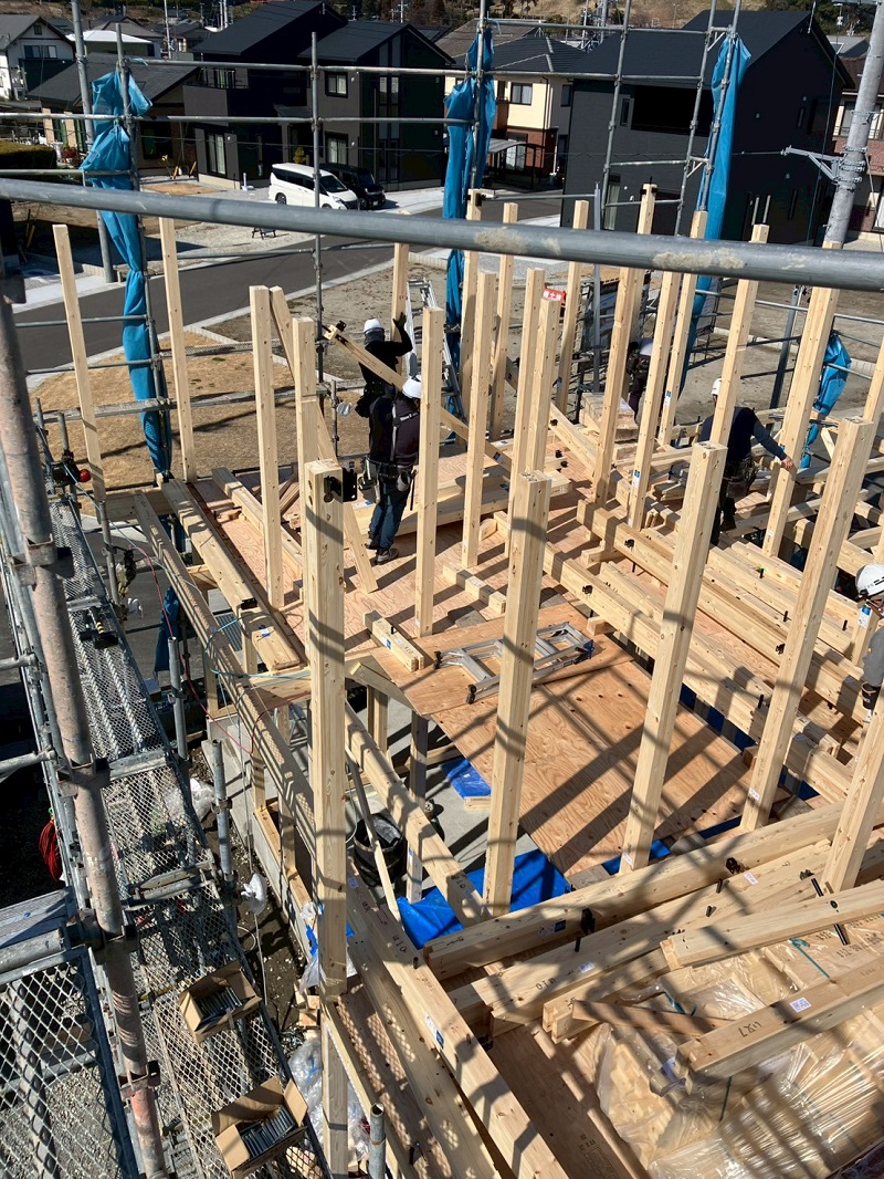 未だに人力で柱を1本ずつ建てながらの上棟ですが、基本だけは頑張って守って行きたいと思います。