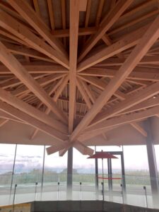 展望施設と空中回廊は八角形というジオメトリーです。東西南北という直交軸を